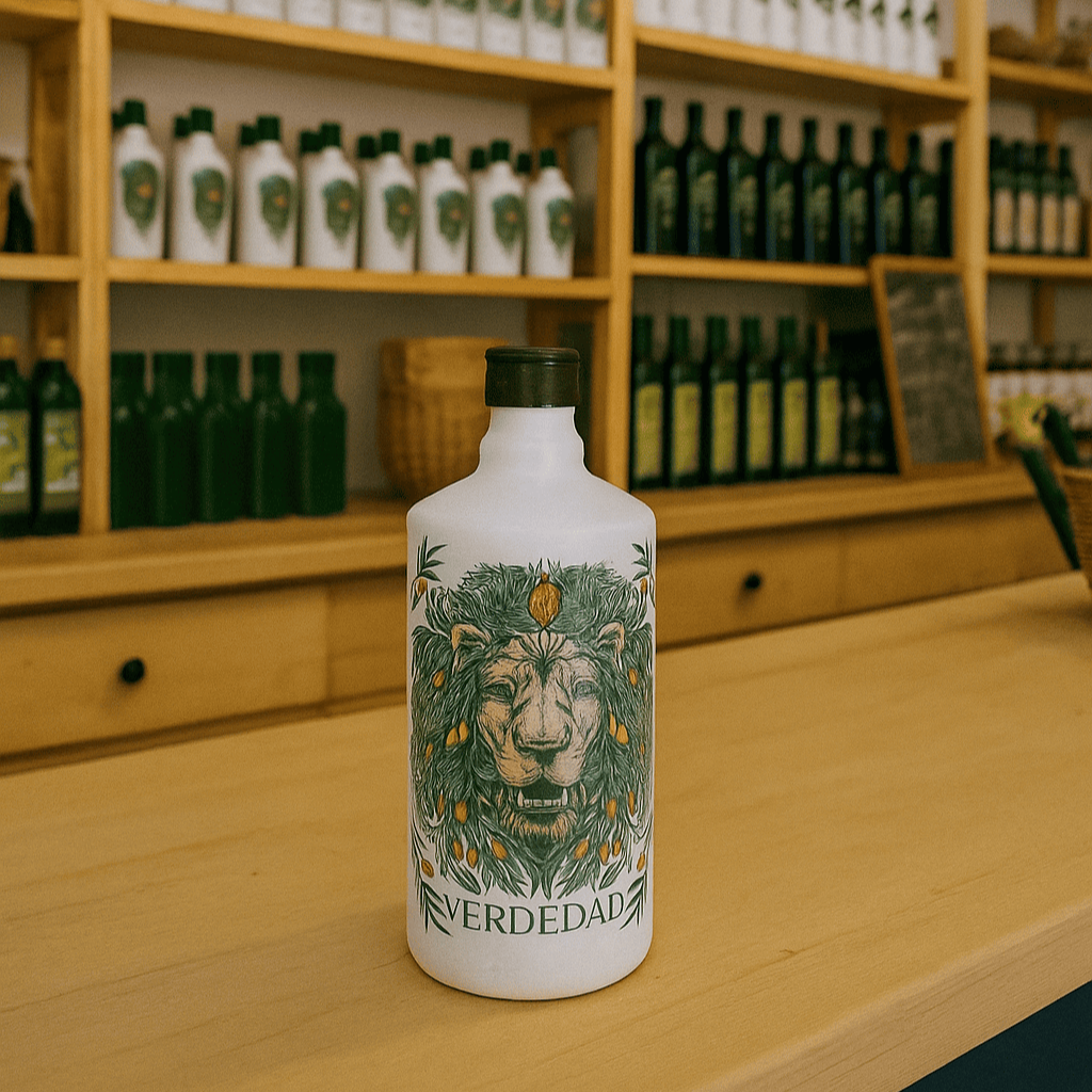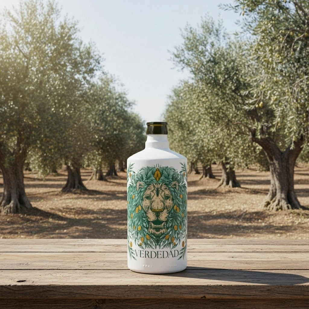 The Verdedad glass bottle reflects the purity of our artisanal extra virgin olive oil, born in Jaén, where the olive tree is part of our identity.